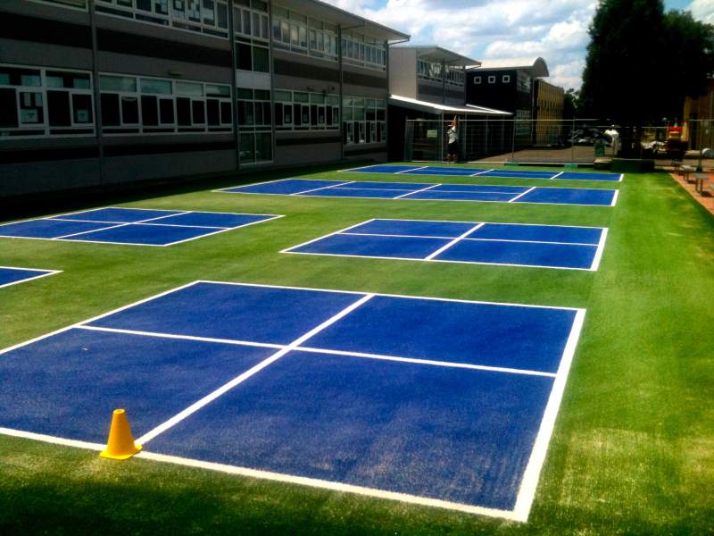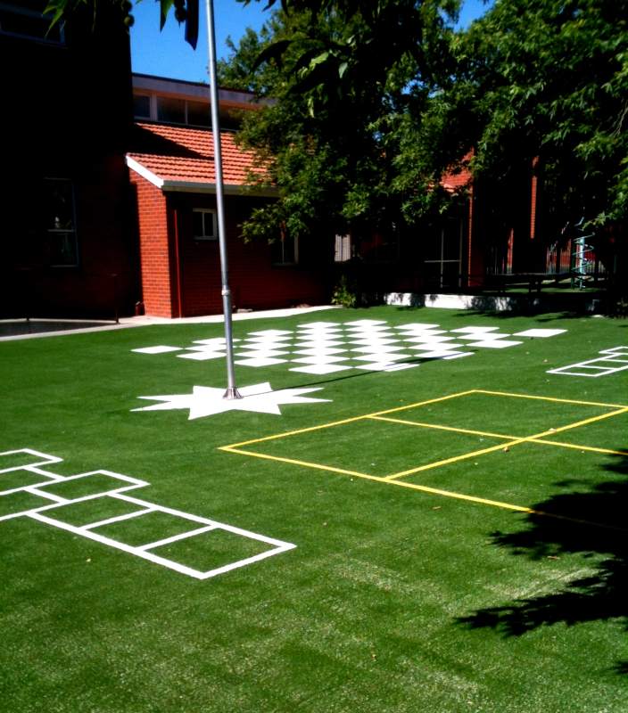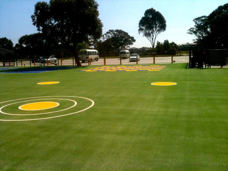- Acrylic and synthetic grass miniature sports and game surfaces, such as basketball keys, hopscotch and four square etc
