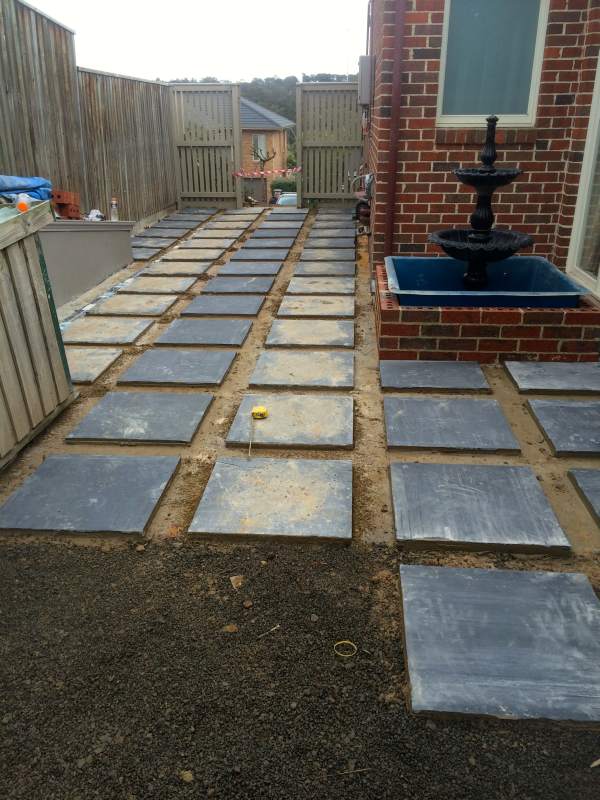 Belgium black pavers and leisure synthetic grass laid throughout.